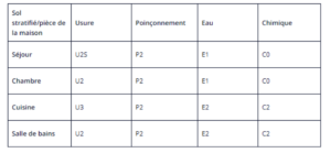 Il existe d’ailleurs un classement des sols stratifiés, qualifié d’UPEC :