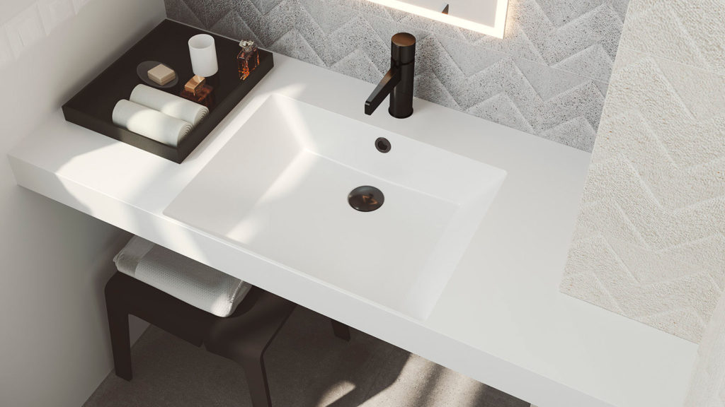 Krion : Porcelanosa a créé un matériau révolutionnaire et totalement recyclable. Il est semblable à de la pierre naturelle. D’une solidité à toute épreuve et facile d’entretien, ce type de matériau est très hermétique. Ce matériau est très utilisé pour la réalisation d’éléments sanitaires.